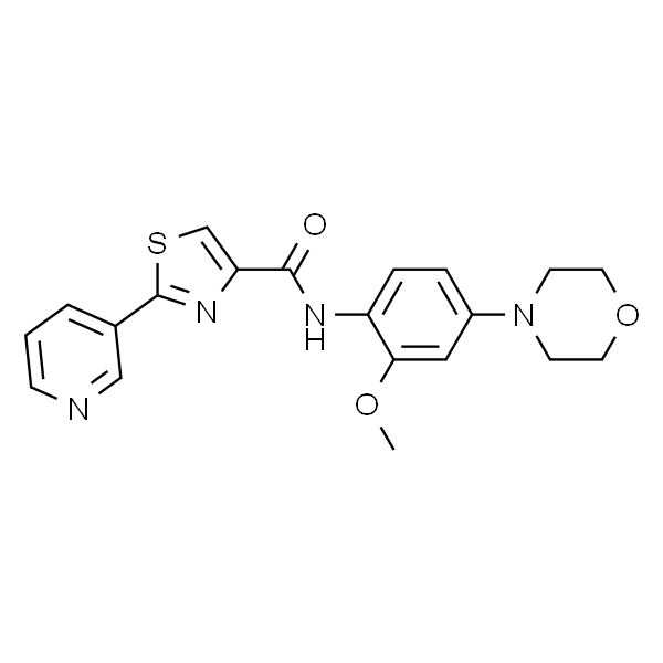InChI=1S/C20H20N4O3S/c1-26-18-11-15(24-7-9-27-10-8-24)4-5-16(18)22-19(25)17-13-28-20(23-17)14-3-2-6-21-12-14/h2-6,11-13H,7-10H2,1H3,(H,22,25)