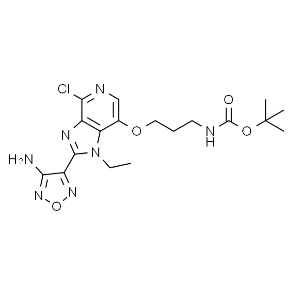 InChI=1S/C18H24ClN7O4/c1-5-26-13-10(28-8-6-7-21-17(27)29-18(2,3)4)9-22-14(19)11(13)23-16(26)12-15(20)25-30-24-12/h9H,5-8H2,1-4H3,(H2,20,25)(H,21,27)