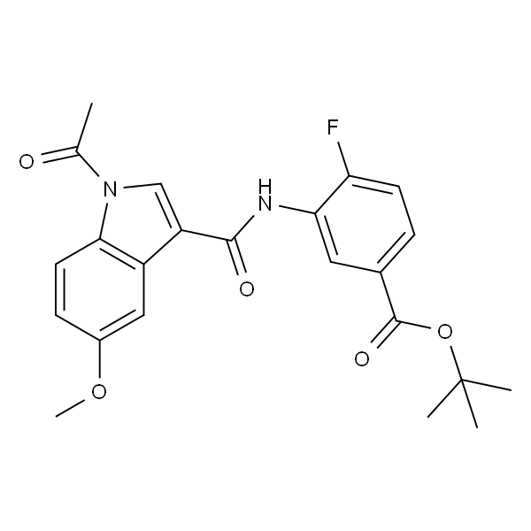 InChI=1S/C23H23FN2O5/c1-13(27)26-12-17(16-11-15(30-5)7-9-20(16)26)21(28)25-19-10-14(6-8-18(19)24)22(29)31-23(2,3)4/h6-12H,1-5H3,(H,25,28)