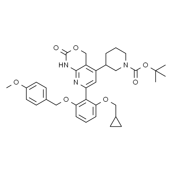 InChI=1S/C35H41N3O7/c1-35(2,3)45-34(40)38-16-6-7-24(18-38)26-17-28(36-32-27(26)21-44-33(39)37-32)31-29(42-19-22-10-11-22)8-5-9-30(31)43-20-23-12-14-25(41-4)15-13-23/h5,8-9,12-15,17,22,24H,6-7,10-11,16,18-21H2,1-4H3,(H,36,37,39)