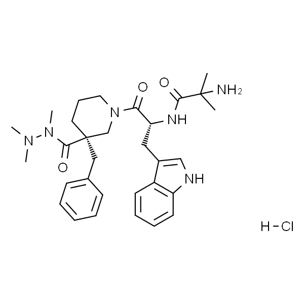 InChI=1S/C31H42N6O3.ClH/c1-30(2,32)28(39)34-26(18-23-20-33-25-15-10-9-14-24(23)25)27(38)37-17-11-16-31(21-37,29(40)36(5)35(3)4)19-22-12-7-6-8-13-22;/h6-10,12-15,20,26,33H,11,16-19,21,32H2,1-5H3,(H,34,39);1H/t26-,31-;/m1./s1