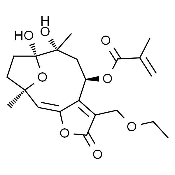InChI=1S/C21H28O8/c1-6-26-11-13-16-14(28-18(13)23)9-19(4)7-8-21(25,29-19)20(5,24)10-15(16)27-17(22)12(2)3/h9,15,24-25H,2,6-8,10-11H2,1,3-5H3/b14-9+